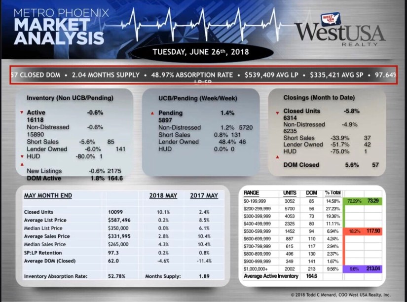 Currently the Valley’s Real Estate market, like its temperatures in July, is really heating up. We are seeing 57 days closed on market. Average list price is $539,000. Average sales price is $335,000. Inventory remains low and continues to fall. What does this mean? Essentially, we have a serious seller’s market.